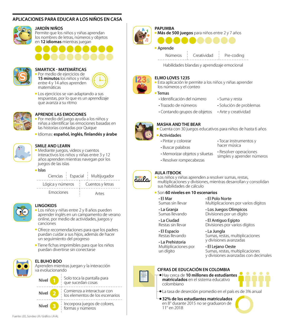 Para ello existen muchas aplicaciones que le permiten a los menores divertirse mientras aprenden por medio de juegos, videos, canciones y demás, así como realizar un trabajo independiente y avanzar a su ritmo, según sus habilidades.