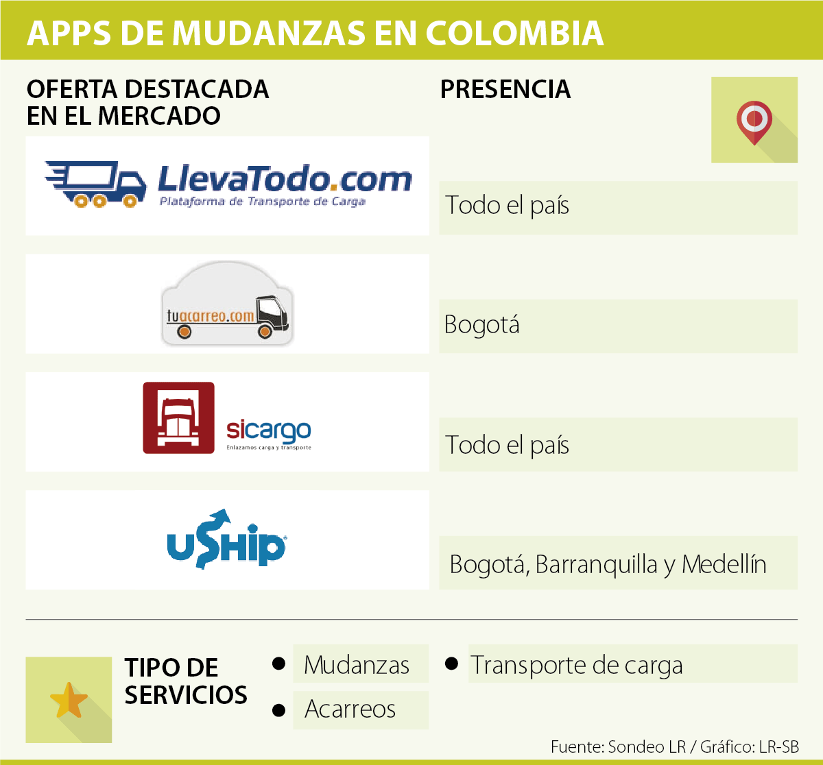 En el caso colombiano, también hay ejemplos. Las aplicaciones LlevaTodo, Tuacarreo, SiCargo y la estadounidense uShip son algunas de las opciones más destacadas en este rubro.