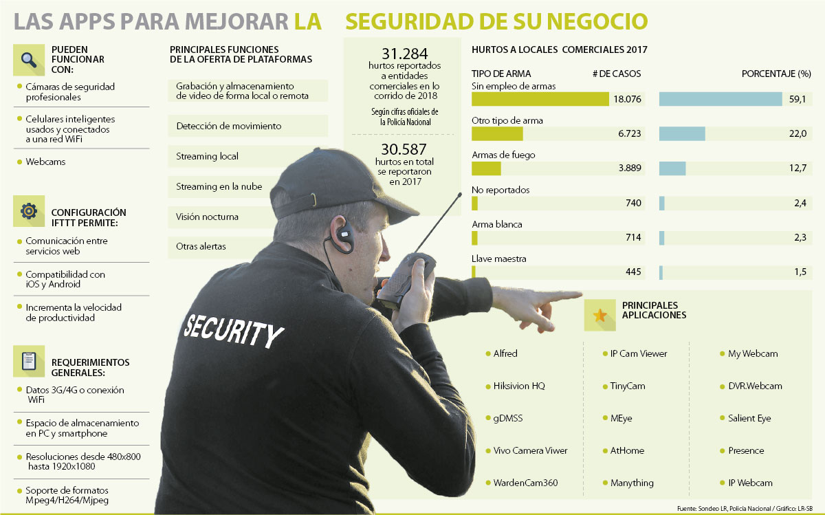 La tecnología cada vez es un vehículo más fuerte para resolver los principales problemas cotidianos de sus usuarios. Uno de ellos es la seguridad, un tema clave en el desarrollo de negocios, ya sean emprendimientos en oficinas o negocios localizados en comercios, que se ha vuelto el foco del desarrollo de una gran cantidad de aplicaciones que hoy permiten, con una gran variedad en oferta, disminuir los riesgos de robos, prevenirlos y tener una mejor reacción ante la inseguridad.