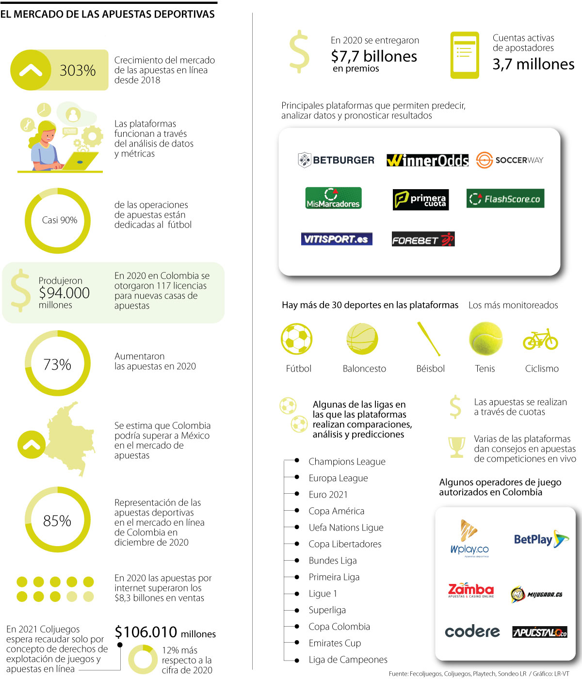 En un sector que superó los $8,3 billones en apuestas para 2020, los programas y plataformas que a través del análisis de datos ayudan a predecir resultados de encuentros deportivos y que analizan, y calculan apuestas seguras, se han vuelto cada vez más populares.