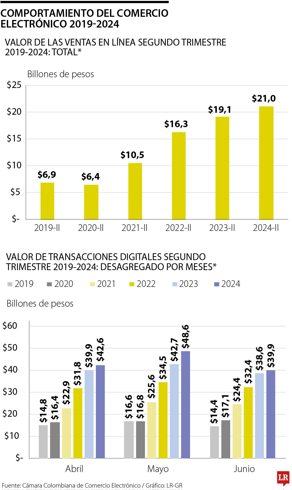 El valor de las ventas en línea en el segundo trimestre de 2024 fue de $21,04 billones, lo que significó un alza de 10,4%.