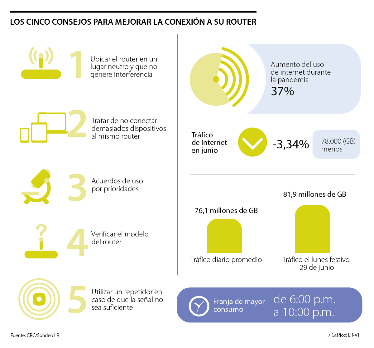 En tercer lugar y para mejorar la relación de las personas que se conectan al router y su capacidad, Jaramillo recomendó pactar tiempos o escenarios de uso, en caso de que la red no sea la de mayor velocidad.