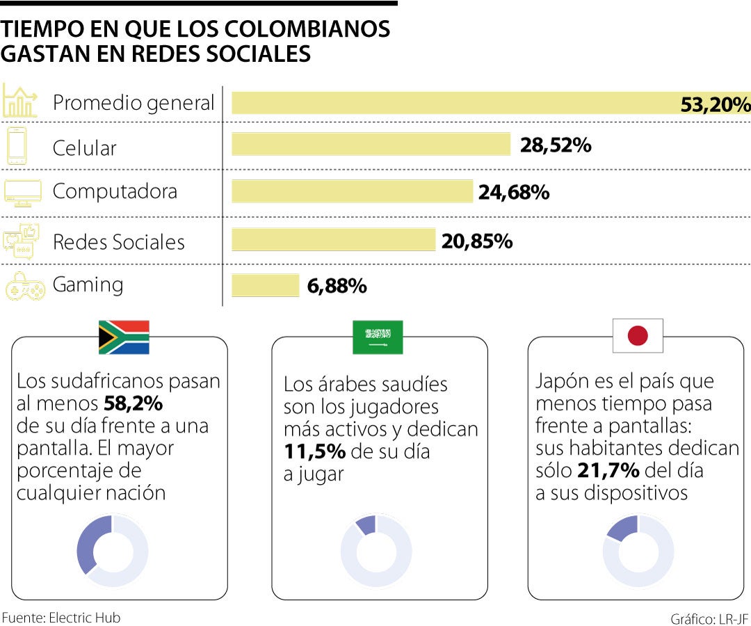 Brasil (2º), Argentina (4º), Colombia (5º), Chile (6º) y México (7º) están en el Top 10 de países que pasan un mayor promedio de tiempo frente a sus pantallas a nivel mundial. Los árabes saudíes son los jugadores más activos y dedican 11,5% de su día a jugar.