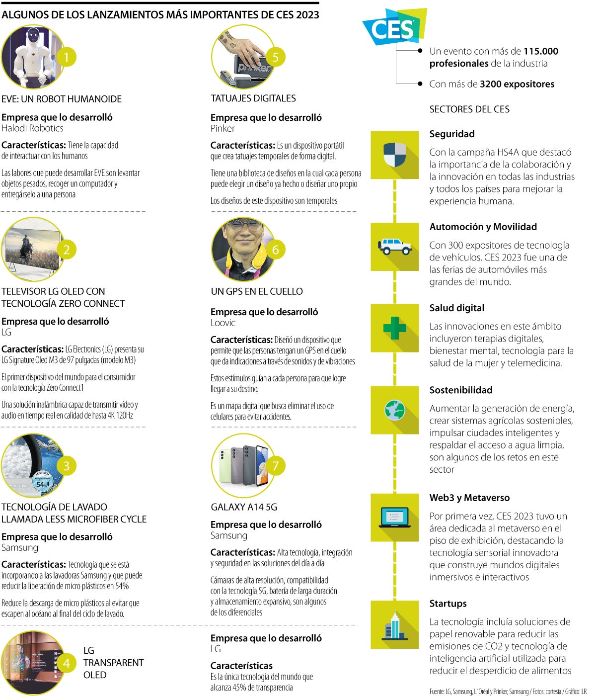 CES superó la asistencia esperada, pues al evento llegaron 115.000 profesionales de la industria y ratificaron a la feria como el encuentro tecnológico global más grande desde la pandemia. Los sectores que tuvieron más acogida fueron: seguridad, destacó la importancia de la colaboración y la innovación en todas las industrias en términos de vigilancia; movilidad, con unos 300 expositores de tecnología de vehículos; y salud digital, pues este año el CES trajo más innovaciones y marcas de este sector al escenario global, con el objetivo de mostrar la velocidad a la que está creciendo el mercado.