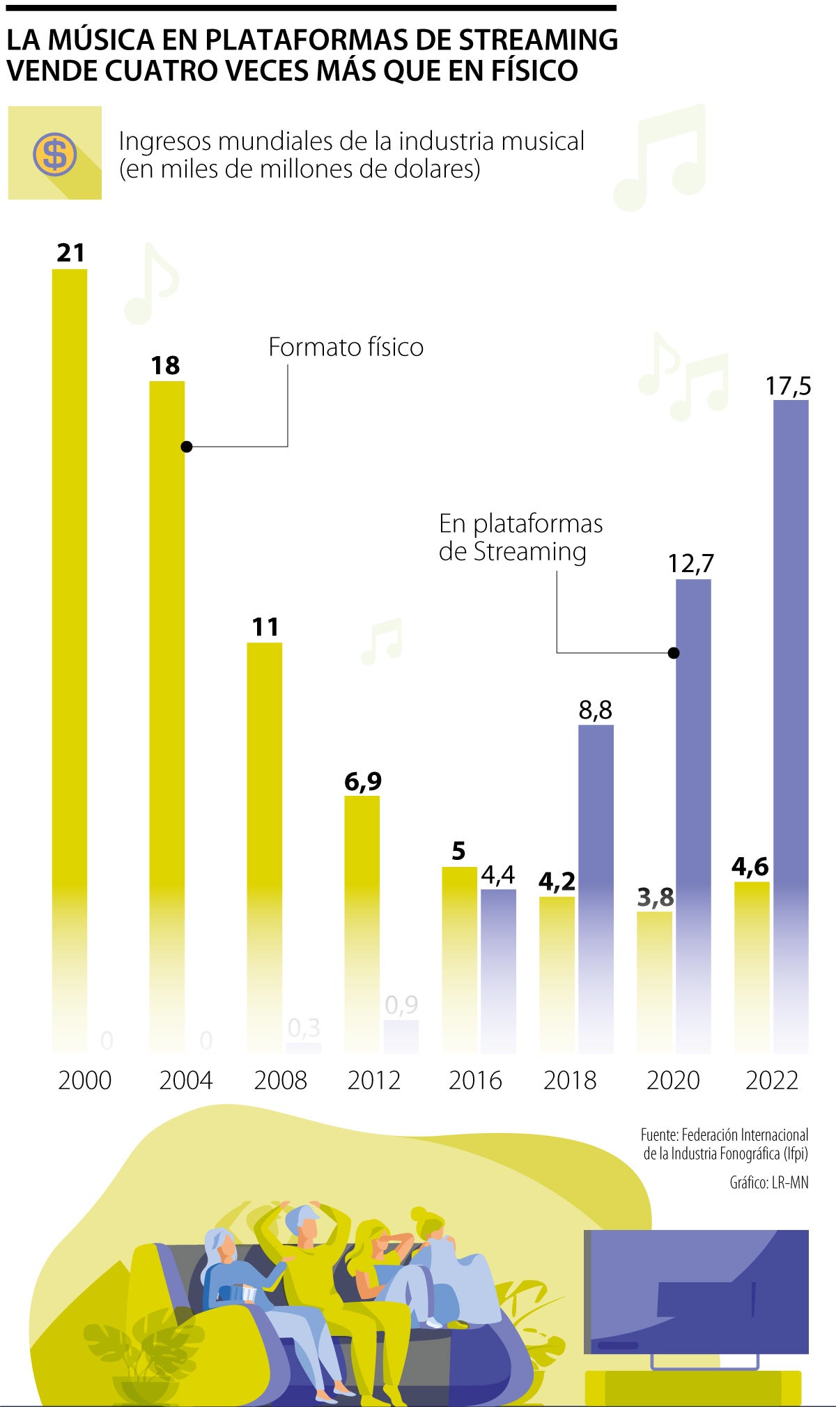 Ahora la realidad es distinta. Las plataformas de streaming son las que más generan ingresos para la industria musical. Desde su llegada al mercado, las plataformas como Spotify, Deezer y Apple Music, entre otras, no han parado de crecer en su número de usuarios y de ingresos. Tanto así que han desplazado a las compañías productoras hasta de los contratos con los músicos y sus obras.