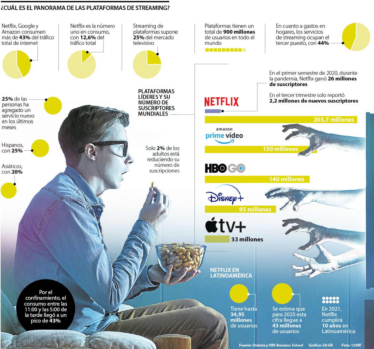 Según un estudio de OBS Business School, con 900 millones de usuarios a nivel mundial, las plataformas de streaming ya suponen 25% del mercado televisivo, siendo Netflix, con 203,7 millones de usuarios, y Amazon Prime Video, con 150 millones, los más populares.