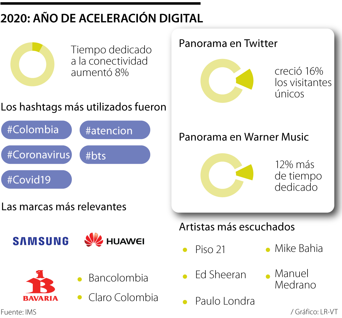 Por otra parte, el informe también detalló que el tiempo dedicado a los juegos en línea aumentó 8% en franquicias como Fifa y Candy Crush. Además, hubo un crecimiento de 37% en los usuarios únicos de Warner Music. Esto, impulsado por artistas colombianos como Piso 21, Mike Bahía y Manuel Medrano.