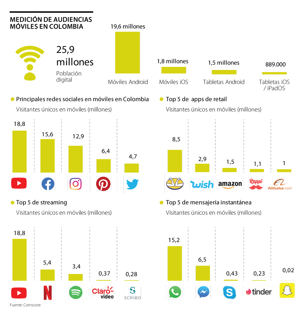 “El consumo móvil en Colombia está creciendo notablemente con algunas tendencias que lo potencian aún más, como el comercio digital. Es importante que el mercado colombiano cuente con estas cifras para entender el comportamiento de su audiencia digital y las prácticas de consumo en las diferentes industrias, sobre todo con los cambios de tendencia que hemos vivido a partir de la pandemia”, dijo Iván Marchant, vicepresidente de Comscore Colombia.