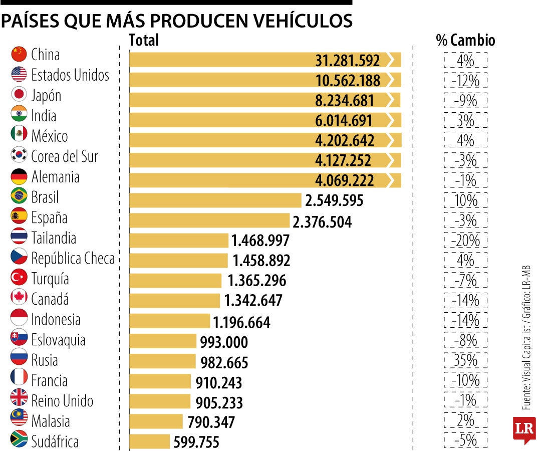 Con 31,28 millones de unidades producidas, China concentra un tercio de la producción global; la cifra representa un aumento de 4%