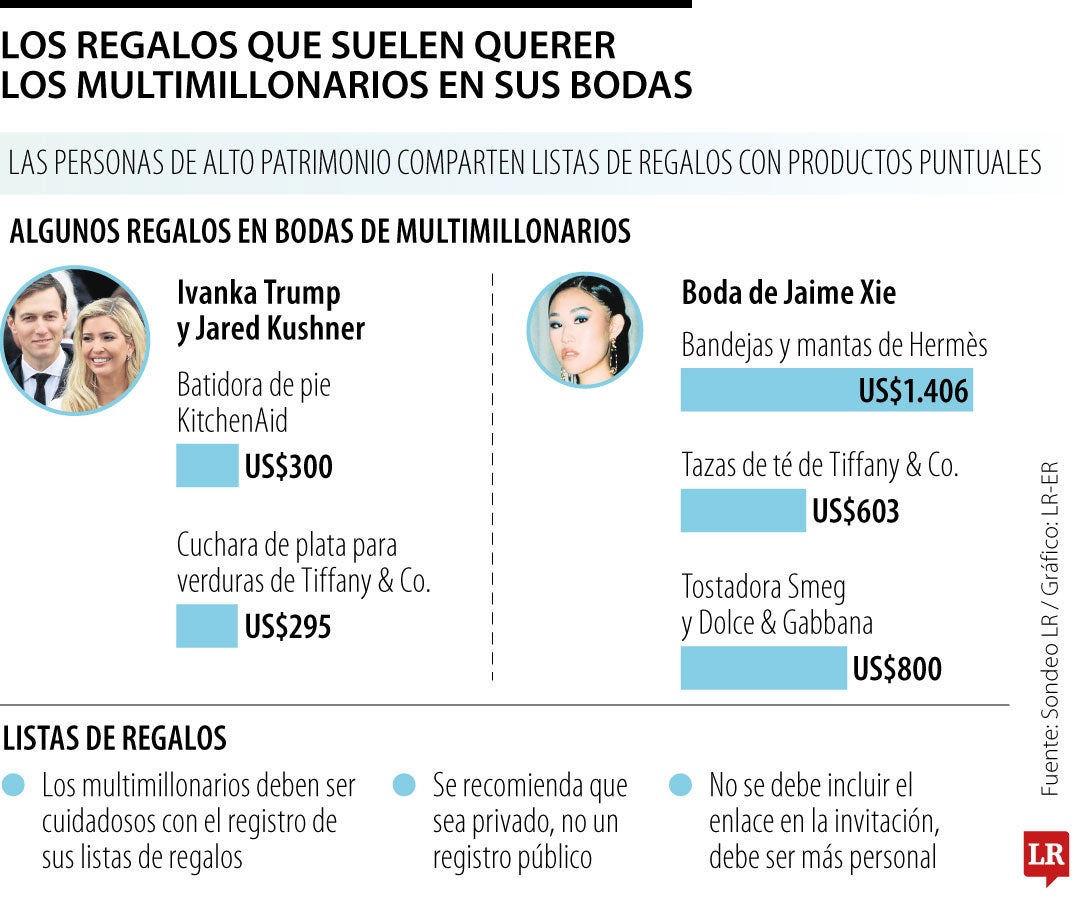 Dolce & Gabbana, Hermès y Tiffany & Co., son algunas de las marcas que se reciben como obsequio en las bodas de lujo. También se suele donar a fundaciones