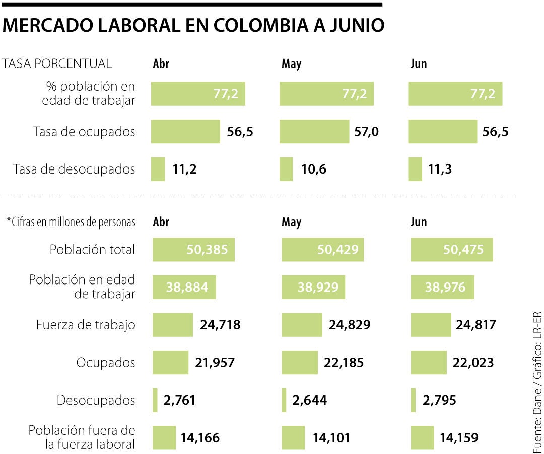 En el total nacional, según lo reportado, en comparación con el trimestres de febrero-abril de 2021, 334.000 jóvenes lograron ocuparse