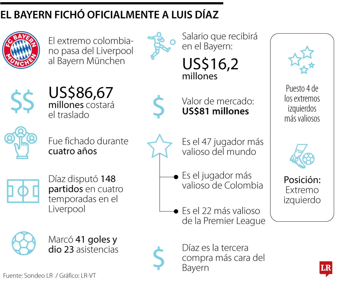 Según Transfermaket, el portal de fútbol especializado en fichajes y valores del mercado, el valor del guajiro es US$88,43 millones