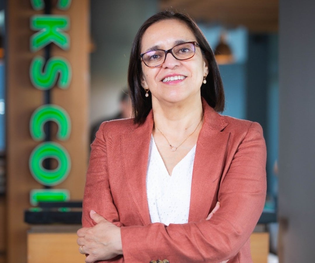 Claudia Aburto, directora de Starbucks para Alsea Suramérica, explicó el compromiso con la sostenibilidad por medio de tiendas certificadas y aporte a caficultores