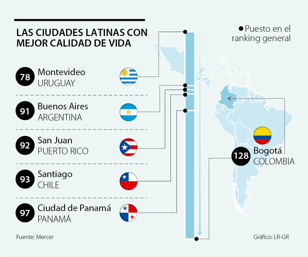 Bogotá entra en el top 20 del ranking regional de costo de vida de Mercer