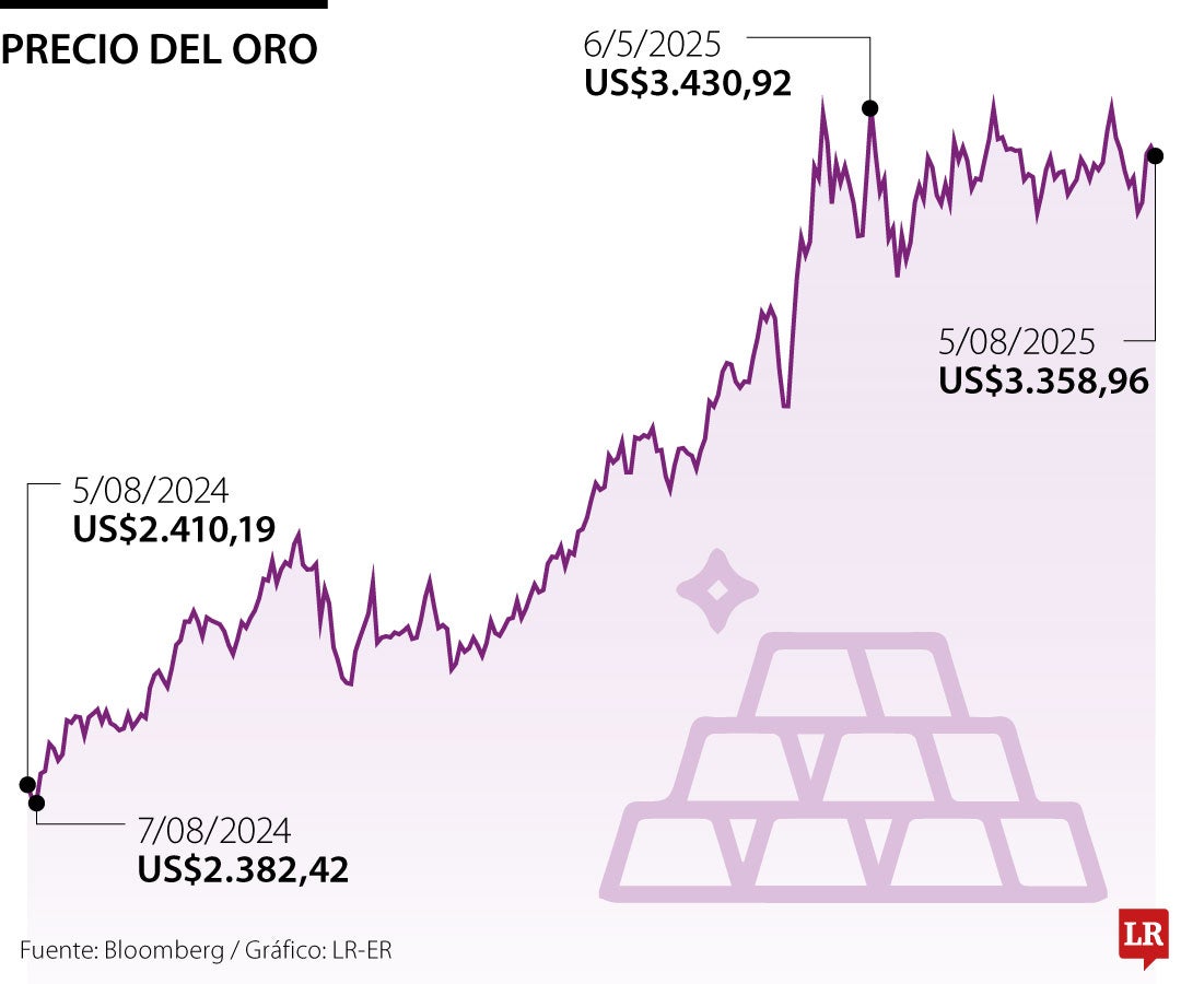 El oro al contado subía 0,2% hasta los US$3.359,81 por onza. Los futuros estadounidense GCcv1 para entrega en diciembre aumentaban 0,3% a US$3.408,50