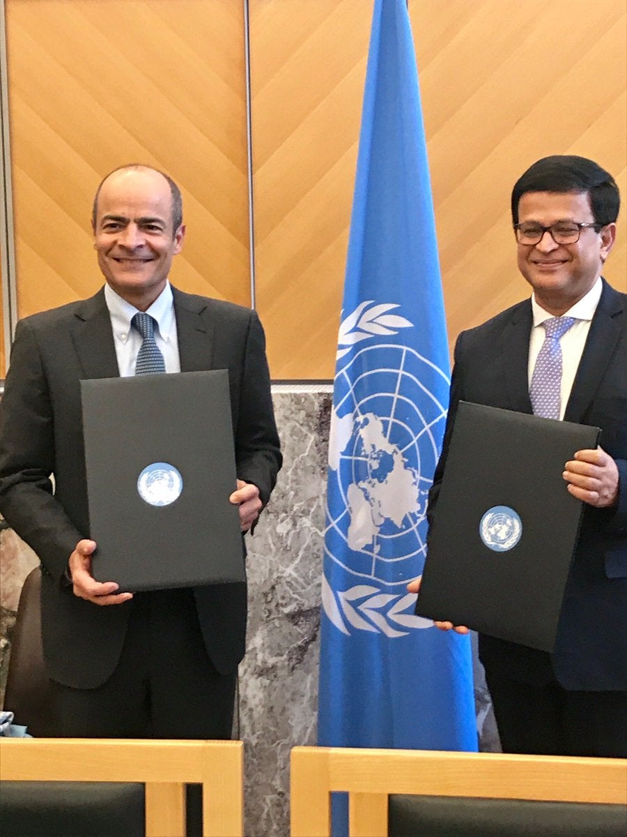 Carlos Brito, director Ejecutivo de AB InBev y Nikhil Seth, director Ejecutivo del Instituto de las Naciones Unidas para Formación Profesional e Investigaciones (Unitar).