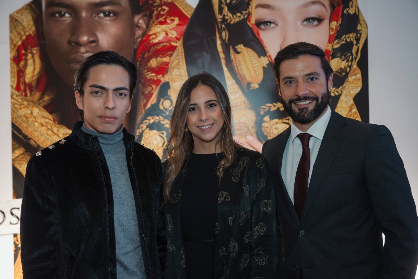 Andrés Casallas, national Trainer de Versace; Fiorella Lecompte, Brand Manager de Versace; y Dorian Mejía, gerente de Distribeauté Colombia, durante la celebración.