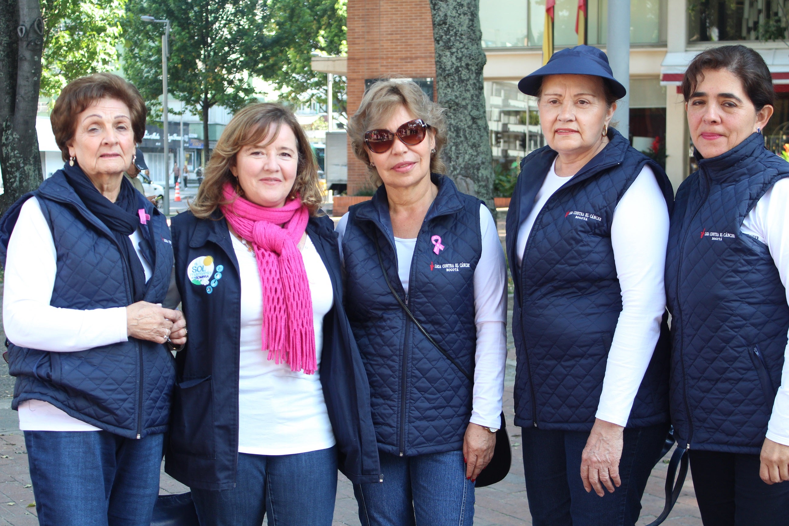 Con motivo del Día Mundial contra Cáncer, se realizó una actividad pedagógica.Cecilia Mejía, Pilar Fernández, Marina Laverde, Rita Hernández y Lucía Sanchez, de la Liga Colombiana contra el Cáncer.