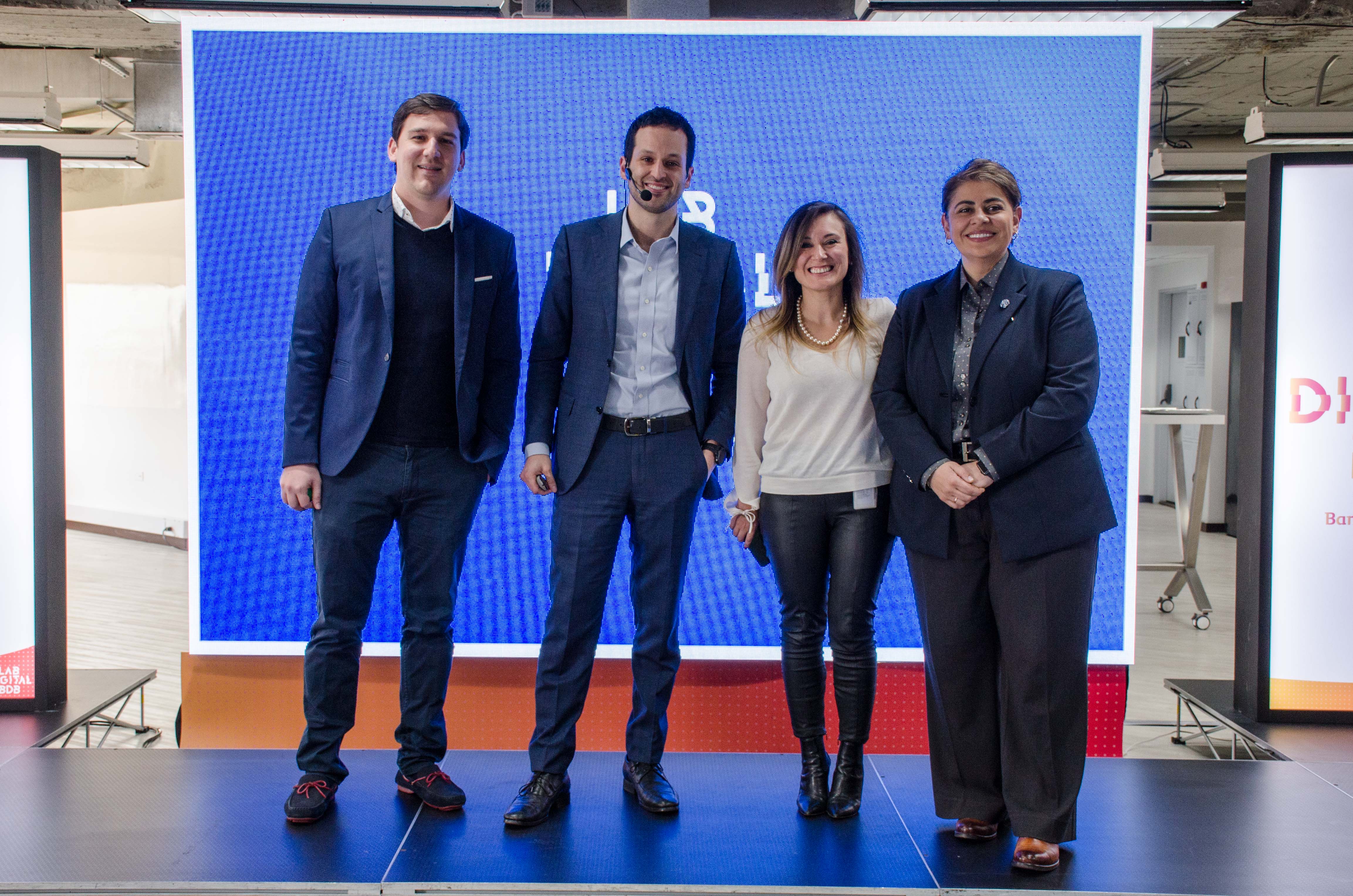 Carlos Pinilla, líder de diseño y UX LAB Digital del Banco de Bogotá; Julio Rojas Sarmiento, vpte. Estrategia y Digital del Banco de Bogotá; Angélica Ardila, directora de Estrategia Digital; y Luz Quintero, navegadora LAB Digital Banco de Bogotá.