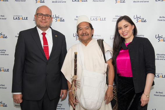 Diego Mora, Vicerrector de Promoción y Desarrollo Humano de la Universidad de La Salle, Mamo Arwa Vicú y Dionne Cruz Arenas, Presidenta de la Asociación Colombiana de Salud Pública.