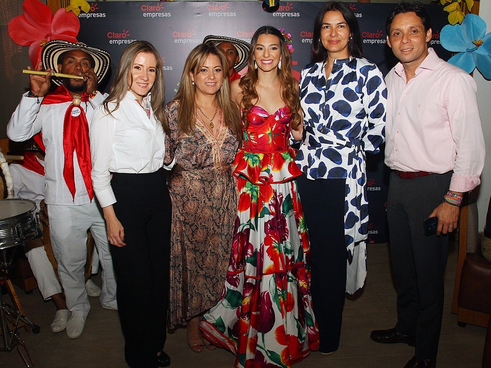 Beatriz Zapata, dir. comercial empresas móvil de Claro; Jackeline Llanos, gte. ventas corporativas de la Costa de Claro; Carolina Segebre, Reina del Carnaval; María Luisa Escolar, dir. comercial Claro, y Edwin Morales Bermejo, gte. comercial cuentas regionales de la Costa.