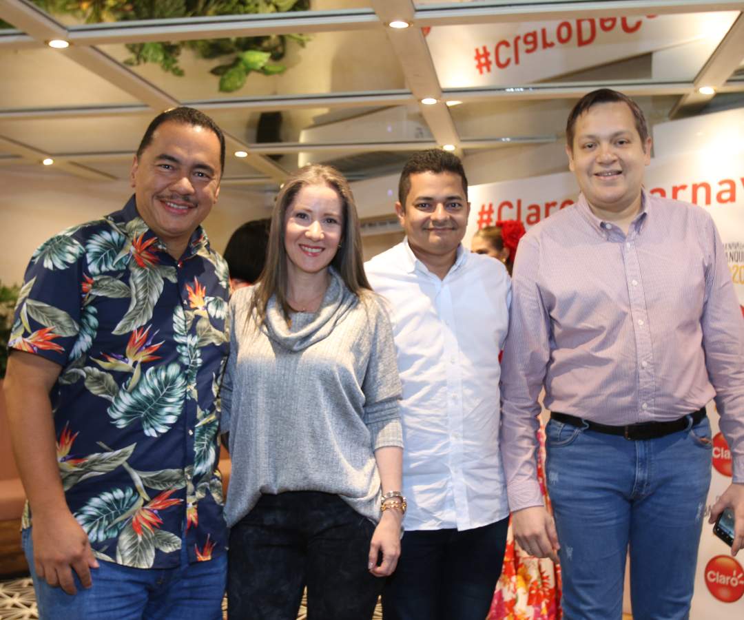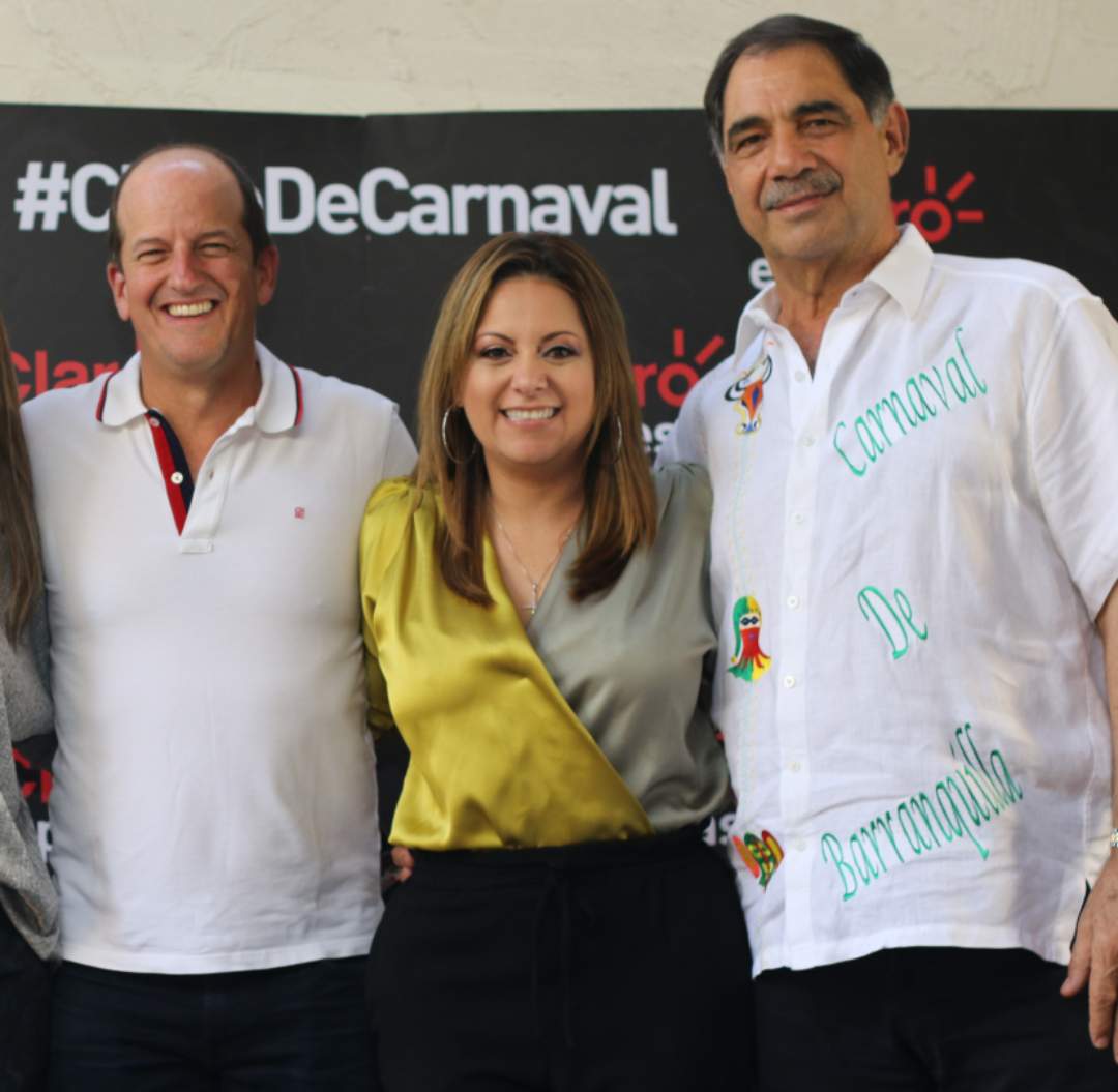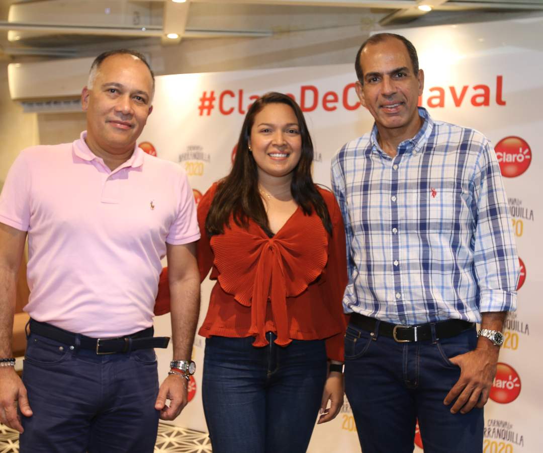 Fernando Isaza; Jacqueline Llanos, de Claro, y Carlos Yacamán, de Tuvacol asistieron a este evento de inicio del Carnaval 2020.