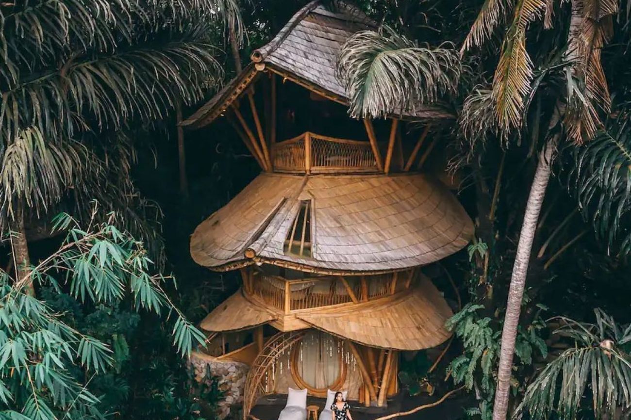 Casa Aura es uno de los alojamientos más exóticos de esta lista. Construida con bambú ecológico en la margen del río Ayung (Indonesia), este edificio destaca por sus formas sinuosas y su extraordinaria ubicación. Cuenta con dos dormitorios en suite y servicios comunes como un restaurante y una piscina natural que convierten a este en un alojamiento perfecto tanto para parejas en luna de miel como para nómadas digitales, según los anfitriones.