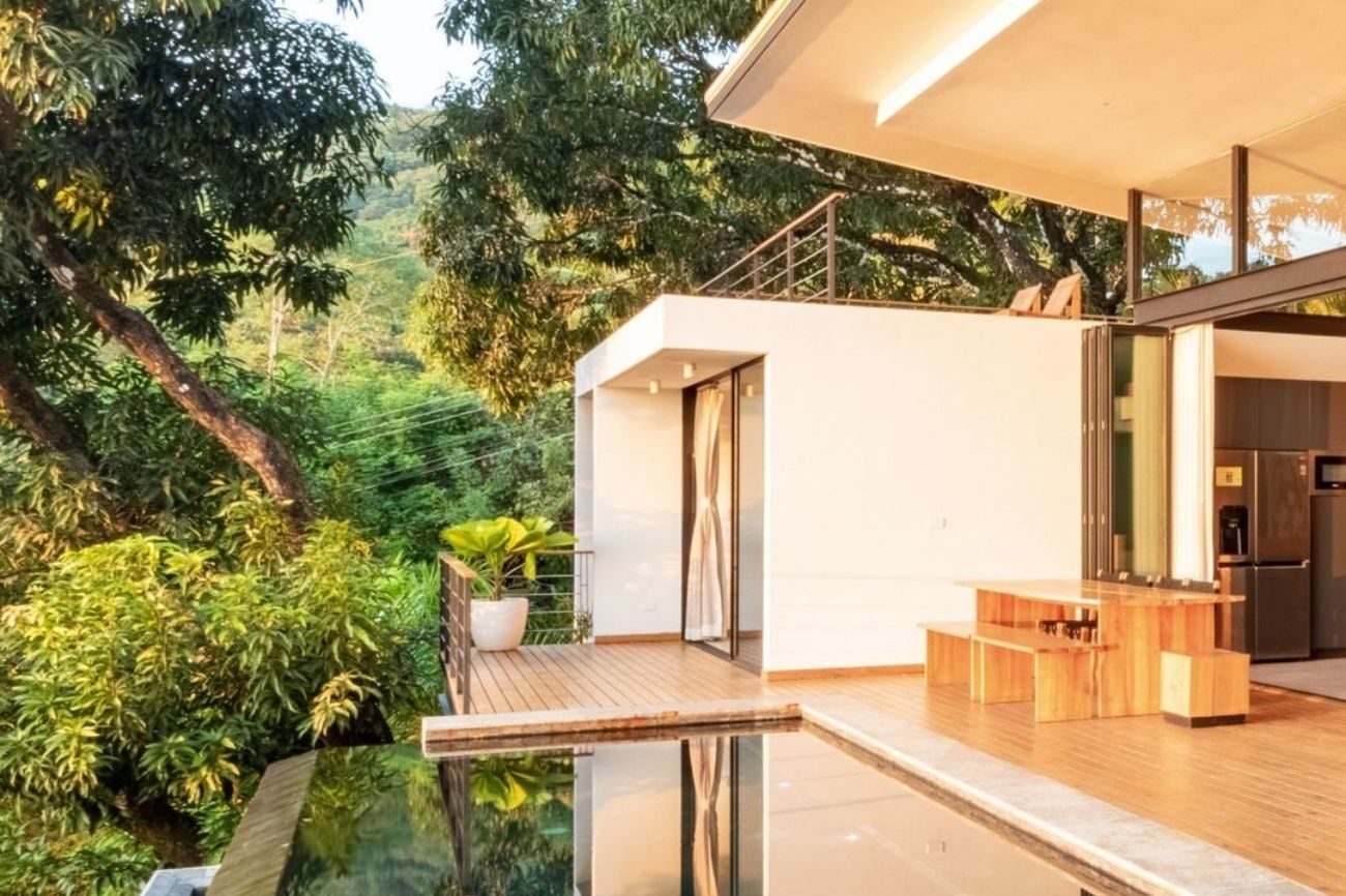Esta moderna villa de tres niveles se encuentra junto a la playa de Santa Teresa, en Costa Rica. La villa El Mango es un complejo de 200 metros cuadrados con cuatro amplios dormitorios. Un interiorismo limpio y abierto, su piscina de borde infinito y la exuberante naturaleza que lo rodea son algunos de los puntos fuertes de este alojamiento.