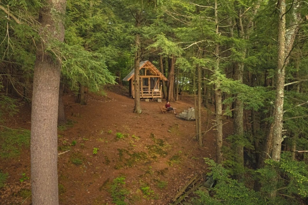 En la línea de las cabañas en el bosque, la casita en Brookline (Estados Unidos) es un alojamiento ideal para parejas que buscan un retiro tranquilo… Sin renunciar a ciertas comodidades. Consta de un pequeño dormitorio con techo transparente, un bonito porche cubierto y una letrina de compostaje fácil de usar. Los anfitriones ofrecen una cocina de propano para cocinar un picnic y un jacuzzi perfecto para relajarse en invierno.
