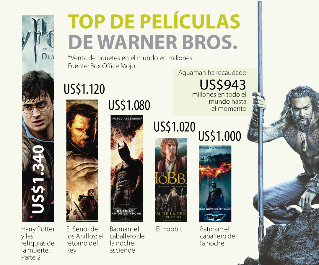 Eso lo convierte en el número uno entre las películas de DC que Warner Bros. ha lanzado desde que el estudio presentó a Henry Cavill en una recepción mixta como el nuevo Superman en "El hombre de acero", cinta dirigida por Zack Snyder. El mayor éxito de DC del estudio cinematográfico hasta ahora es "El caballero de la noche asciende", que recaudó US$1.080 millones en 2012. Al parecer "Aquaman" también superará esa cifra.