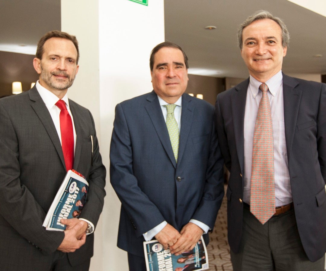 Diego Sicardi, gte. gral región Andina SC Johnson; Rodolfo Montalvo, vicepresidente de RR.HH. Colgate Palmolive, y Luis Fernando Gallo, gerente de PriceSmart, participaron en la última asamblea del CEA.