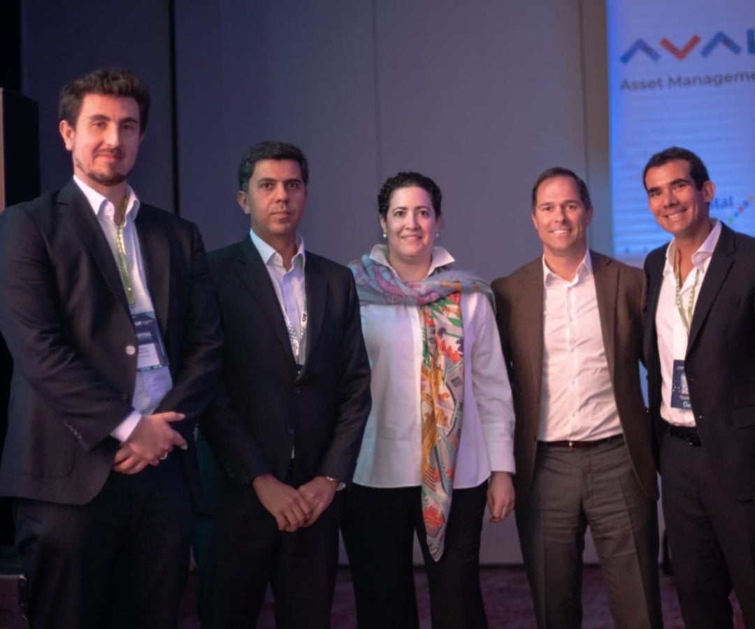 Darío Laguado; Juan Pablo Fonseca, Ashmore; Milena López, Corficolombiana; Manuel García, Advent; y Diego Chona, Private Equity Latam ex Brasil en Patria.