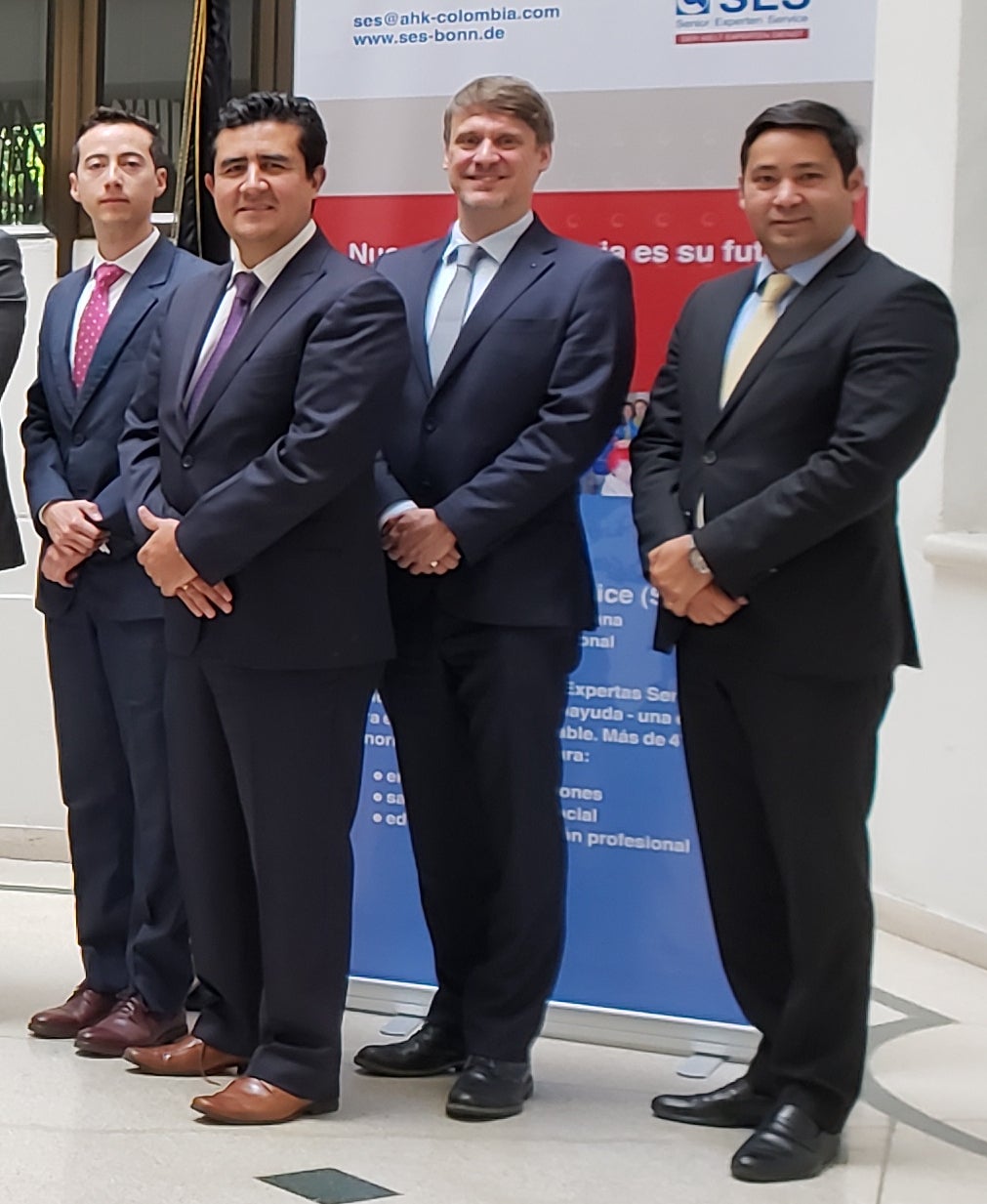 Germán Ríos, asesor senior Promoción Inversión para Europa de Procolombia; Andrés Monroy, dir. Acceso y Asuntos de Gobierno de Merck S.A.; Henrik ter Huerne, gte. Schryver de Colombia S.A.S.; y Eliacid Heredia, reg. Head of Finance de Siemens S.A.