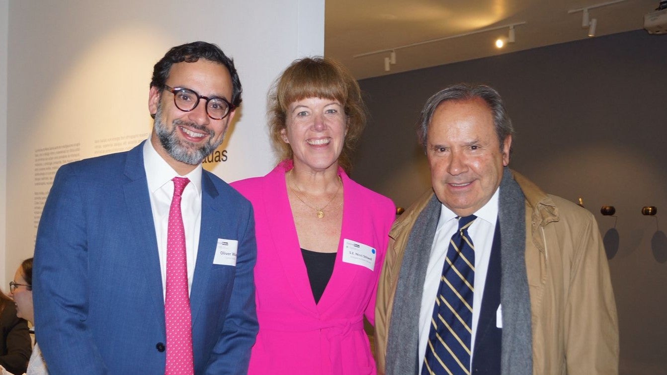 Oliver Wack, socio gerente de Región Andina en Control Risks; Nicci Stilwell, embajadora de Nueva Zelanda; Miguel Gutiérrez, vicepresidente de la Organización Ardila Lülle