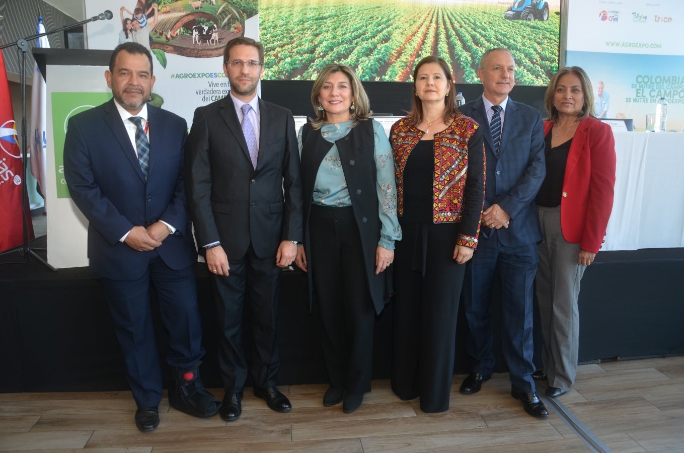 Se presentó en Corferias la XXII versión de la Feria Agroexpo. El evento contó con la presencia de gremios y entidades del sector agropecuario participantes. En la foto: Andrés Vargas Pedraza, director del Proyecto Agroexpo de Corferias; Andrés Felipe García, director de Planeación y Desarrollo Sostenible de Fedepalma; Marisol Suárez, directora comercial y de mercadeo de Corferias; Alba Lucía Suárez, directora de Asobufalos (Unaga); Álvaro Ernesto Palacio, gerente de la Asociación Frutícola de Colombia (Asohofrucol); y Deyanira Barrero, gerente del Instituto Colombiano Agropecuario (ICA).