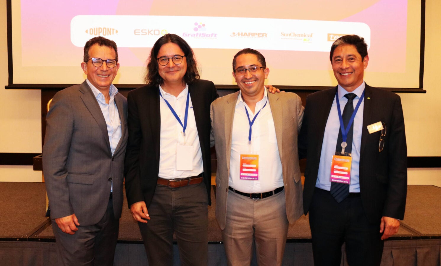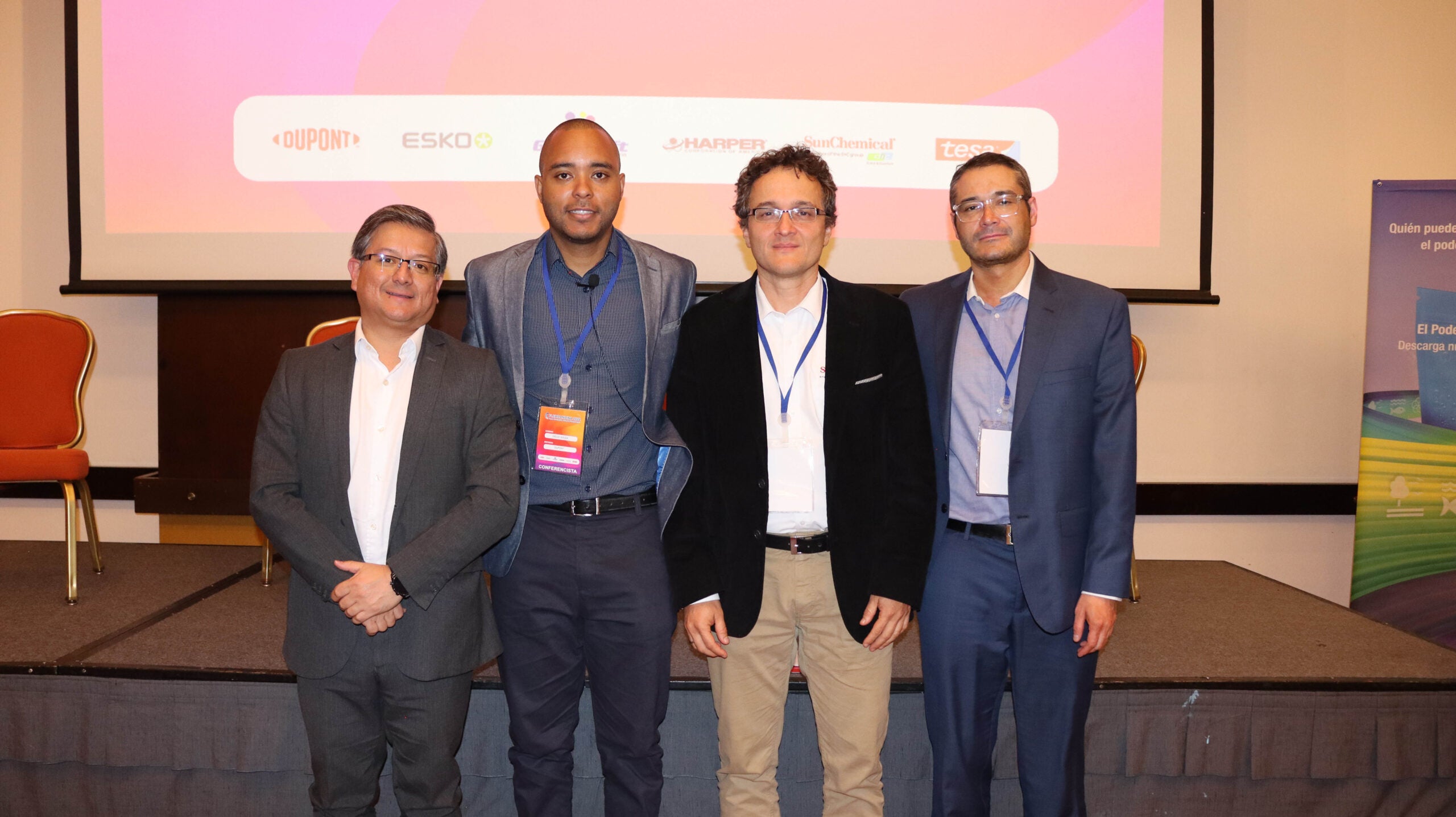 Juan Diego Cardona, jefe de Consolidación Empresarial de la Cámara de Comercio de Bogotá, James González, de Grafisoft, Ricardo Romero, de Harper y Alejandro Carvajal, de Esko