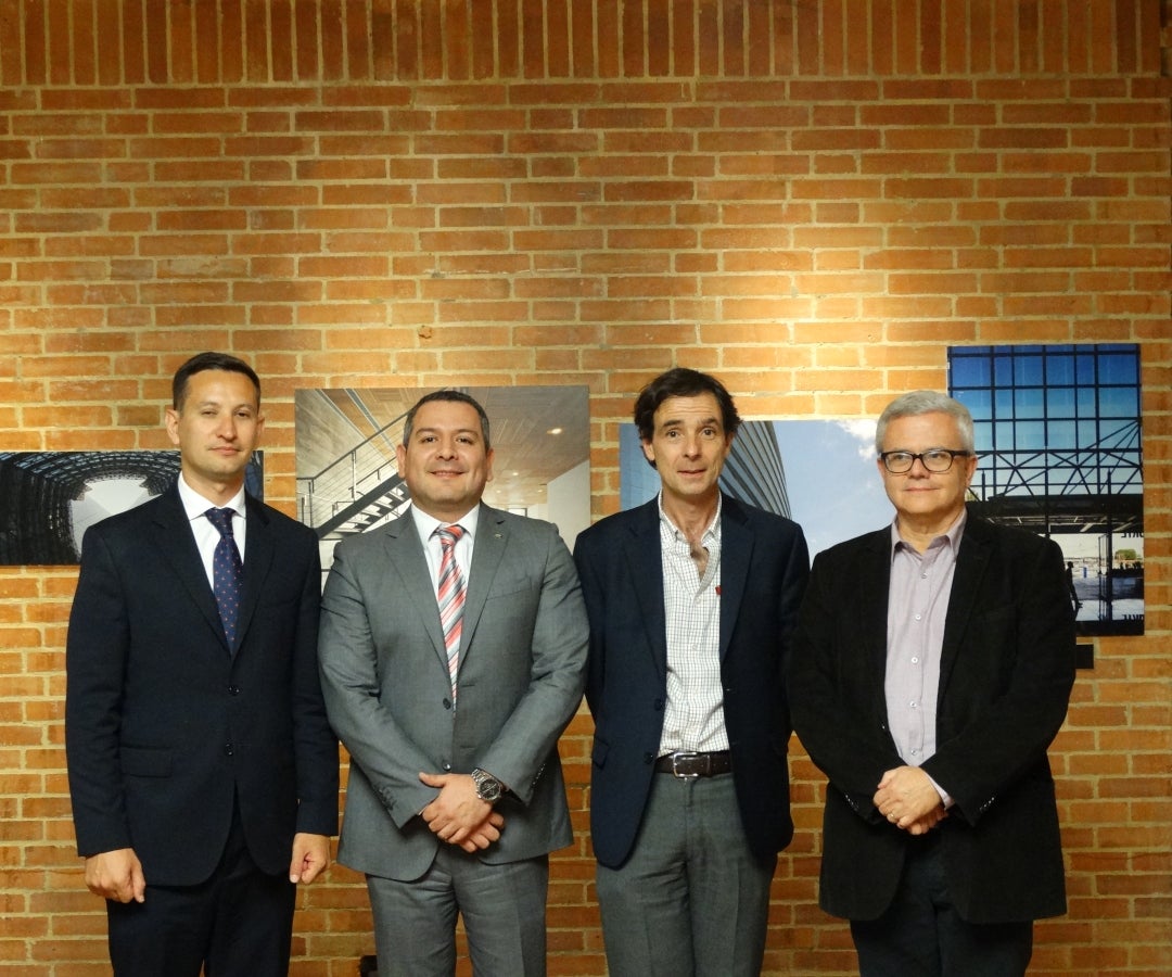 Daniel Cristiano Guimarães, segundo Secretario de la Embajada de Brasil; Carlos Sánchez Badillo, gte. Gral. Apex- Brasil-América del Sur; Eduardo Rocha Tamayo, pte. Sociedad Colombiana de Arquitectos, y Edison Borges López,. pte. de Asbea.