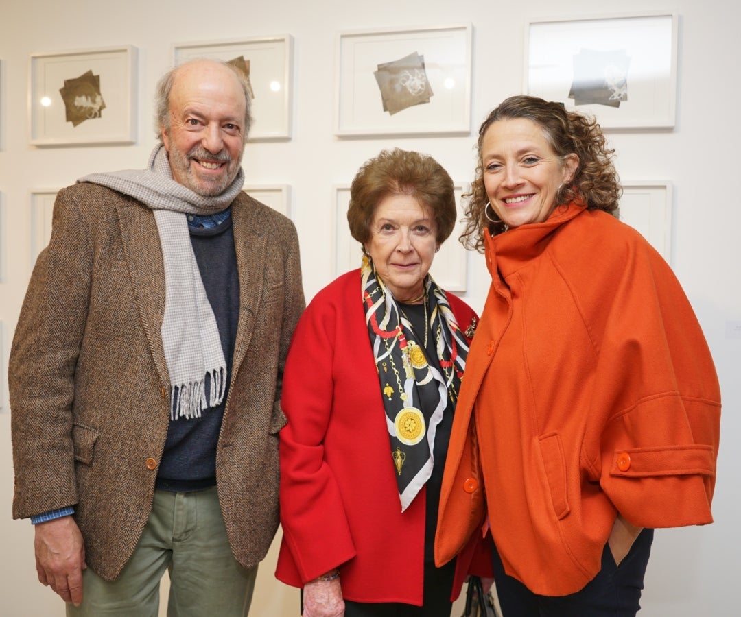 Alejandro Gómez y Beatriz Salazar, coleccionistas de arte; y Ángela Pérez, gerente de cultura del Banco de la República, estuvieron en el lanzamiento de la obra de Puri y la inauguración de la galería.