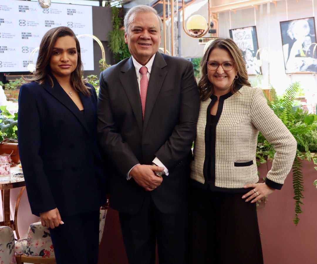Albania Rosario, fundadora de Fdla; Ovidio Claros presidente de la Cámara de Comercio de Bogotá; y Mónica Conde, vicepresidenta de Asuntos Internacionales y Cooperación de CCB