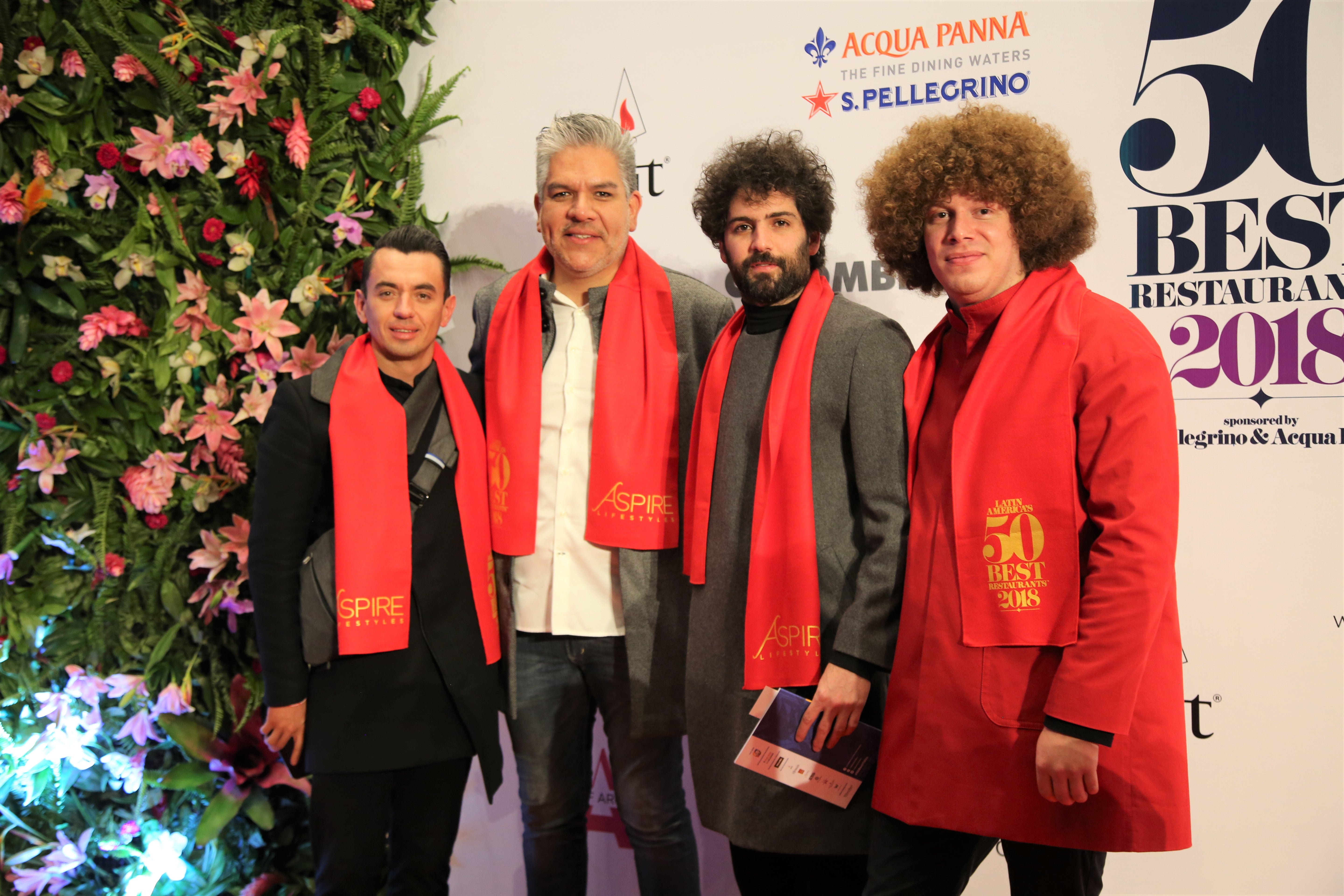 En el centro Ágora de Bogotá se celebró la entrega de los Latin America’s 50 Best Restaurants en los que se eligieron a los mejores cocineros de la región, y que tuvieron a la capital del país como sede por segunda vez consecutiva. El ganador de la noche fue el chef peruano Mitsuharu Tsumura, fundador de Maido (central). En la foto con el ganador también posaron, William Drew, editor jefe de la guía británica The World’s Best Restaurants, Claudia Bahamón, presentadora del evento y Tim Webb, managing director de la lista global.