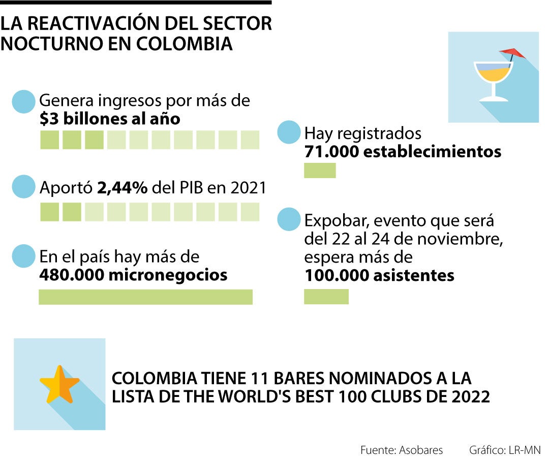 El sector de la noche es uno de los de mayor contratación en el país, con ingresos cercanos a los $3 billones y con un aporte al PIB de 2,44% en 2021, según cifras de Asobares.