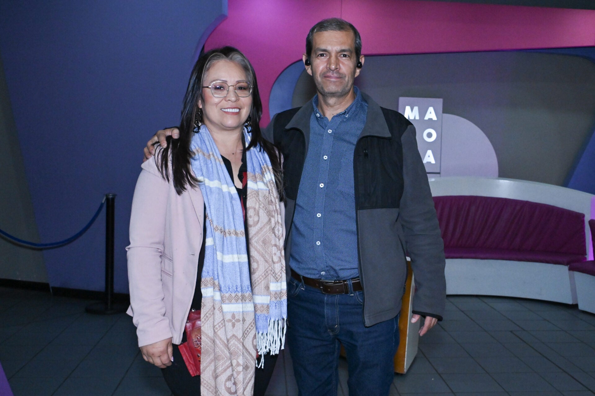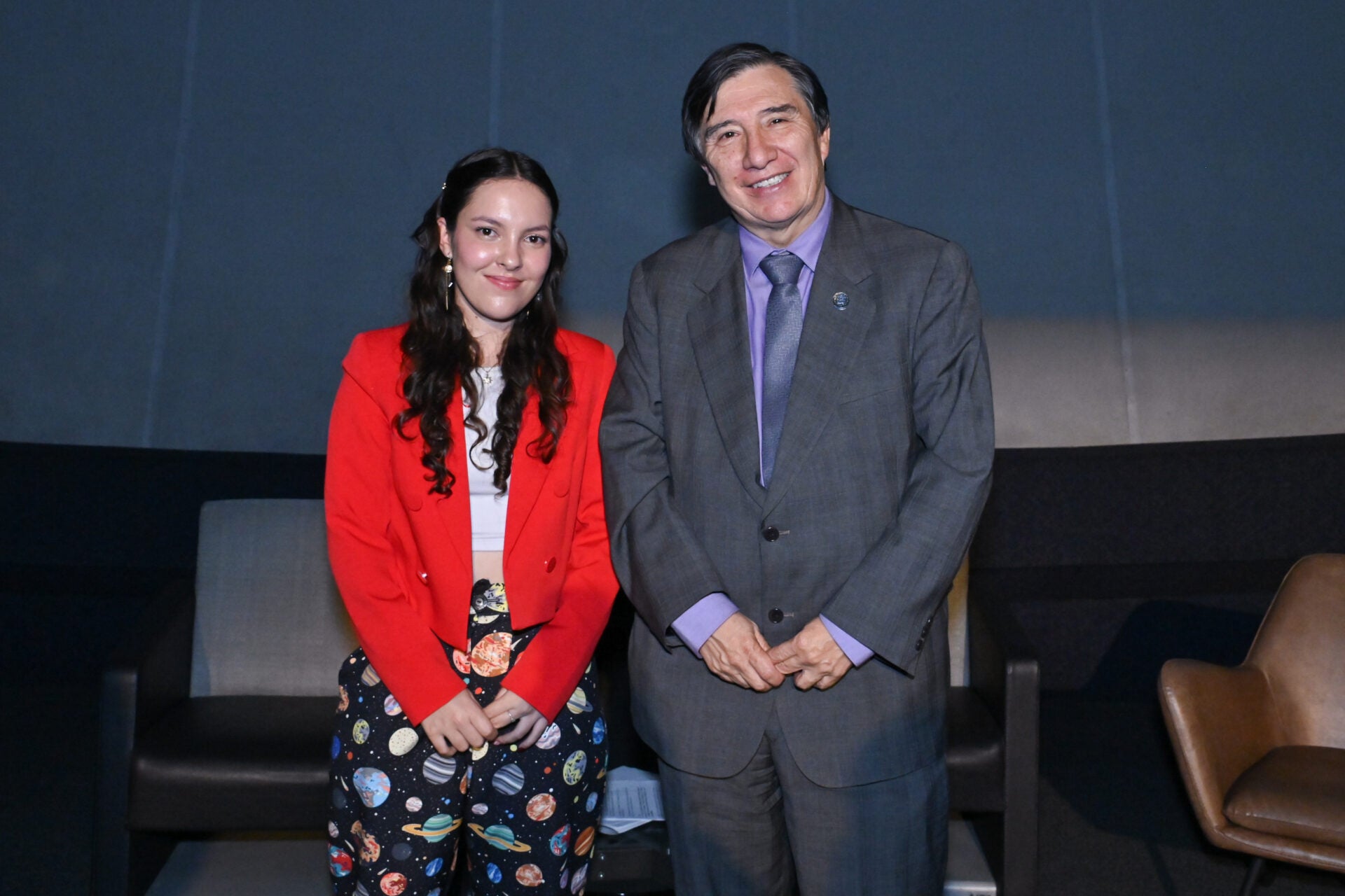 Andrea Delgado Córdoba, directora de capacidades y apropiación de conocimiento del Ministerio de Ciencia; y Marco Antonio Quijano, astroquimico Misión Espacial Apolo II.