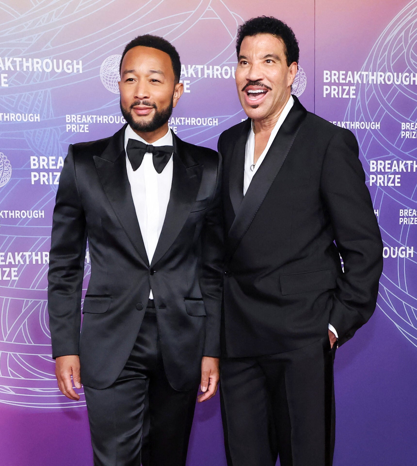 John Legend, cantante, compositor y productor; y Lionel Richie, icono de la música y ganador del Grammy, asisten a la gala de los Breakthrough Prize en Santa Monica.