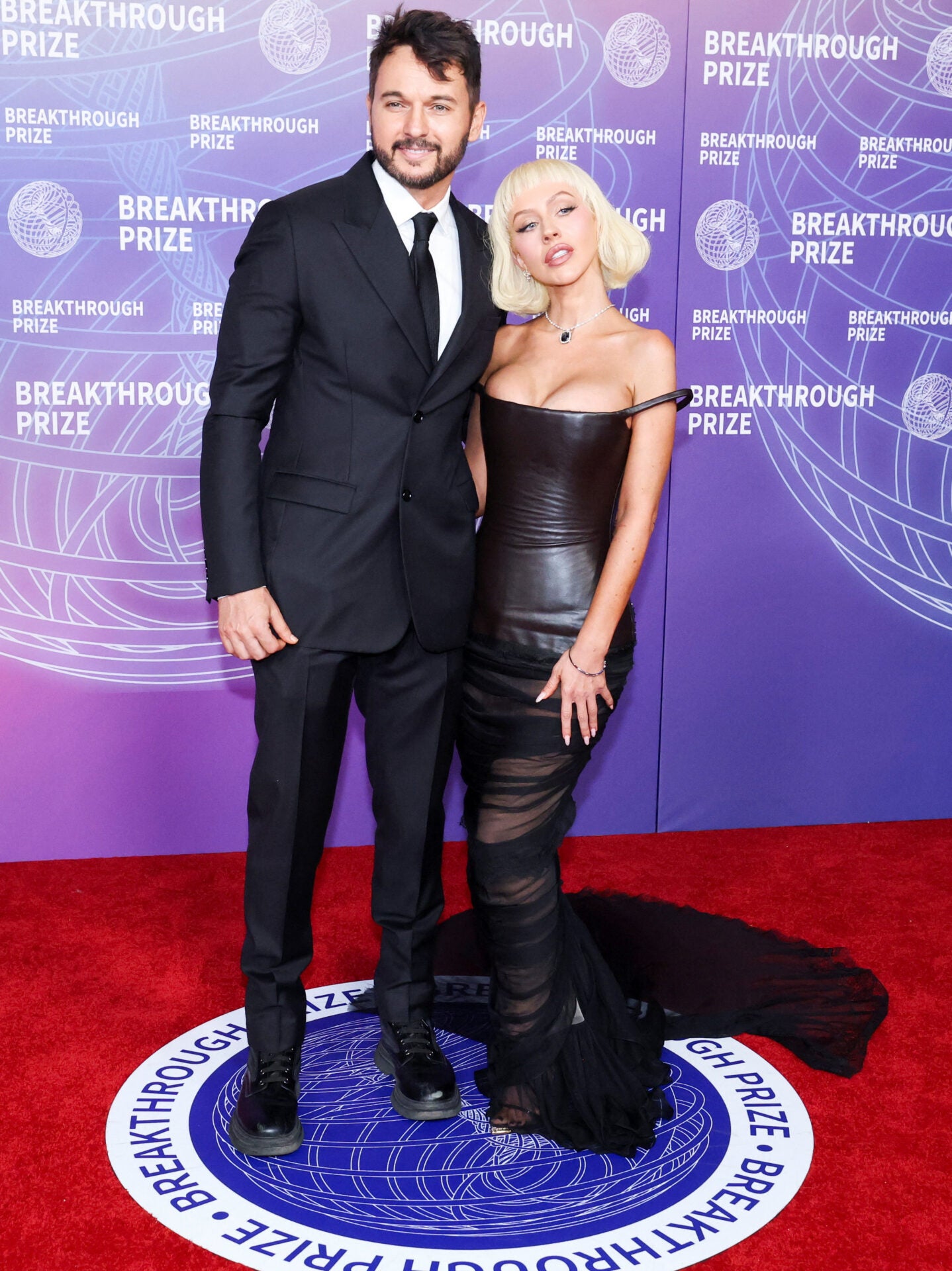 Matthew Rutler, productor musical, y Christina Aguilera, cantante y empresaria, asisten a la gala de los Breakthrough Prize en Santa Monica, California.