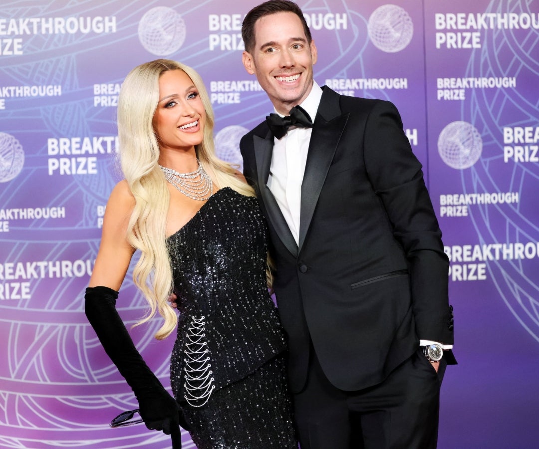 Paris Hilton, empresaria y figura mediática, y Carter Reum, empresario y capitalista de riesgo, asisten a la gala de los Breakthrough Prize en Santa Monica, California.