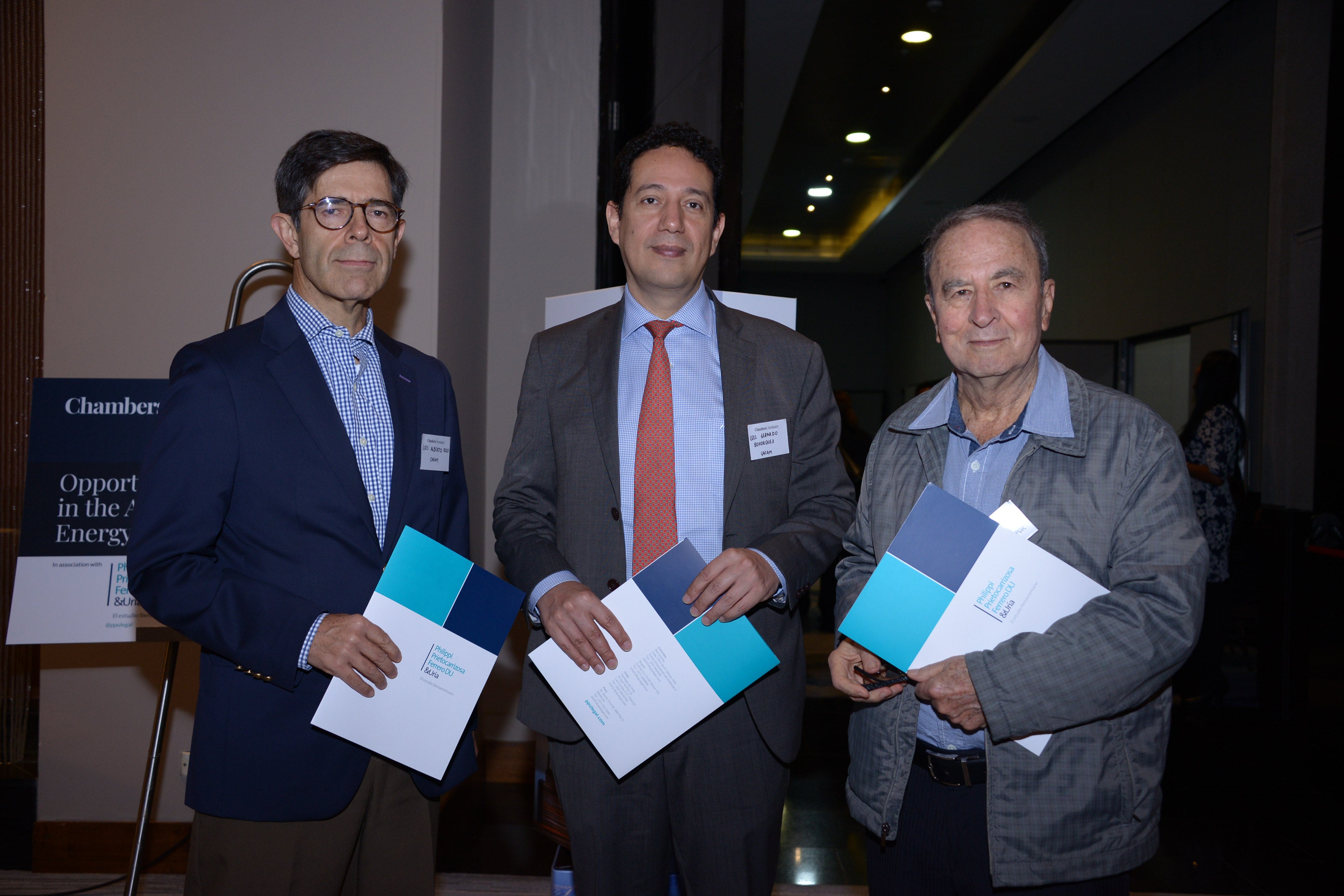 Andrés Romero, director de Valgesta Energía Chile; Sandra Manrique, socia de Philippi Prietocarrizosa Ferrero DU & Uria (PPU); y María Amo, gerente de proyectos de Chambers & Partners.