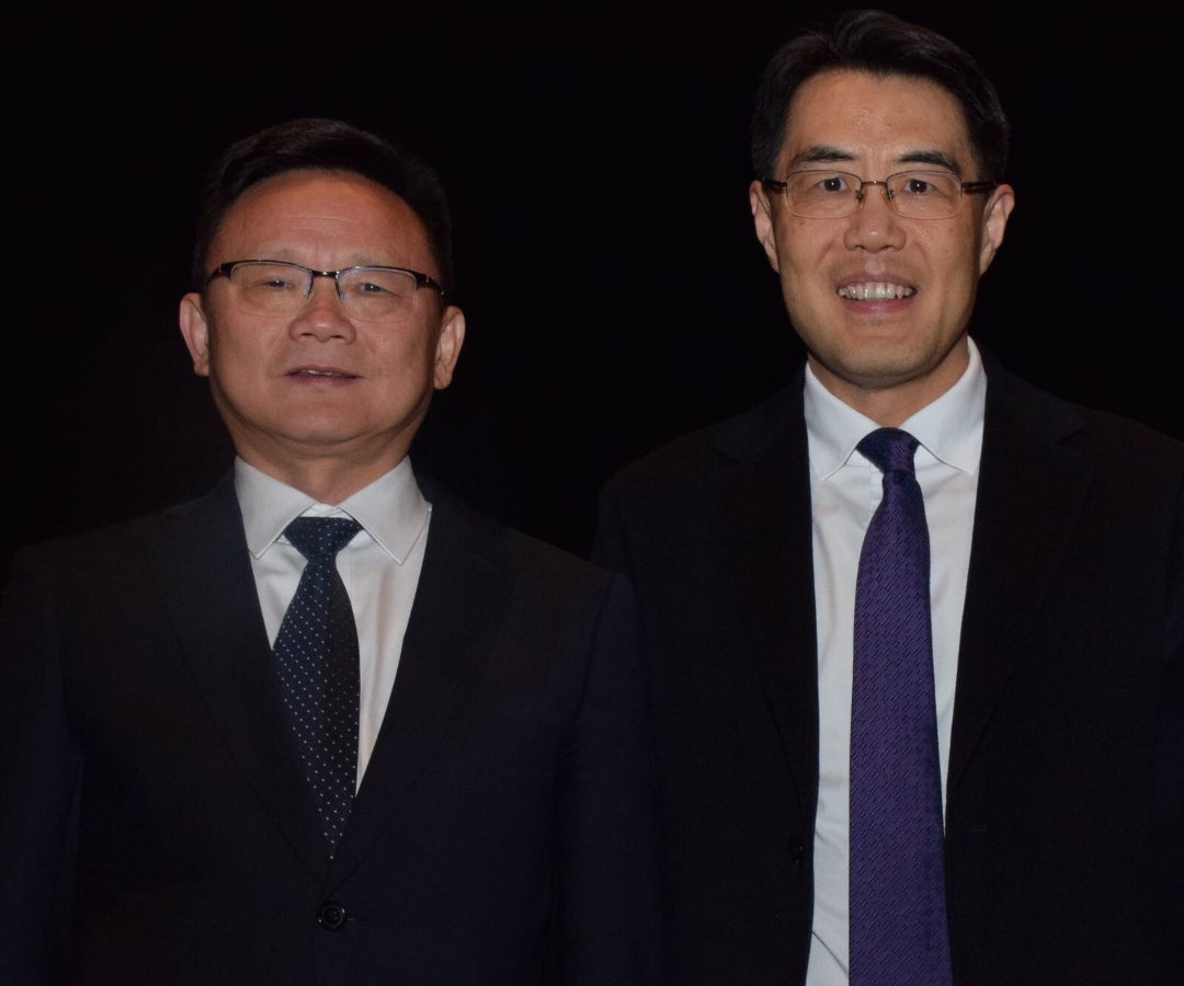 Xu Yongjun, vicepresidente de la Federación China de Círculos Literarios y Artísticos; y Zhu Jinyang, embajador de China en Colombia.