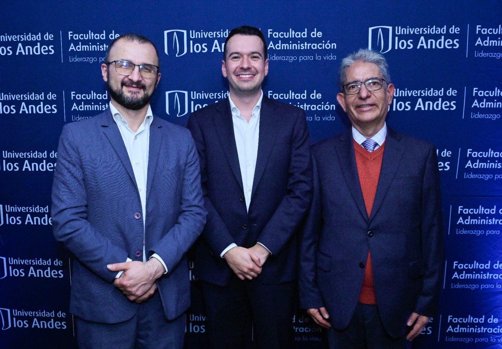 Juan Pablo Soto, Vicedecano de Relaciones Corporativas Fac. Administración Universidad de los Andes, Jaime Eduardo Marín, Director Programas Executive Education Universidad de los Andes y Jesús Muñoz, Profesor de la Universidad de los Andes