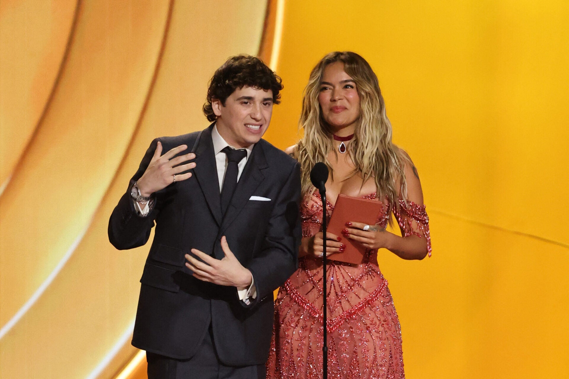 Karol G le entregó uno de los premios a Bad Bunny. Estuvo acompañada de Marcello Hernández.