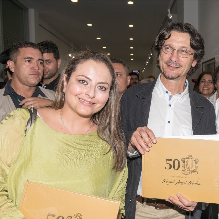 Claudia Marcela Amaya, gobernadora del Meta y Adonai Ramos Daza, artista , estuvieron en la inauguración de la exposición en Villavicencio.